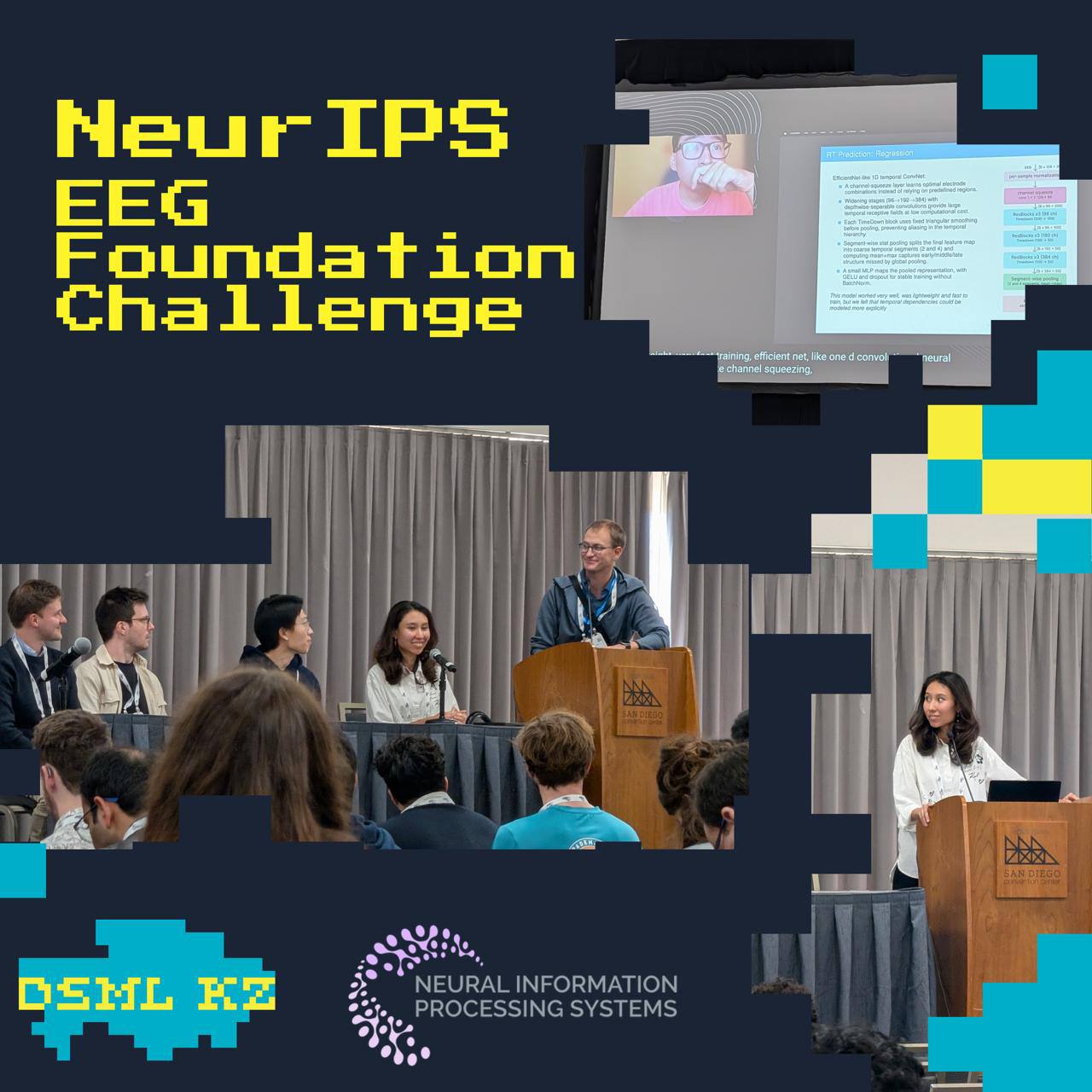 Для нашего комьюнити особенно приятно, что команда из Казахстана получила spotlight talk в рамках воркшопа Foundation models for brain and body. Аяна представила решение EEG Foundation Challenge на месте, в Сан-Диего, а Ануар подключился дистанционно из-за визовых сложностей.